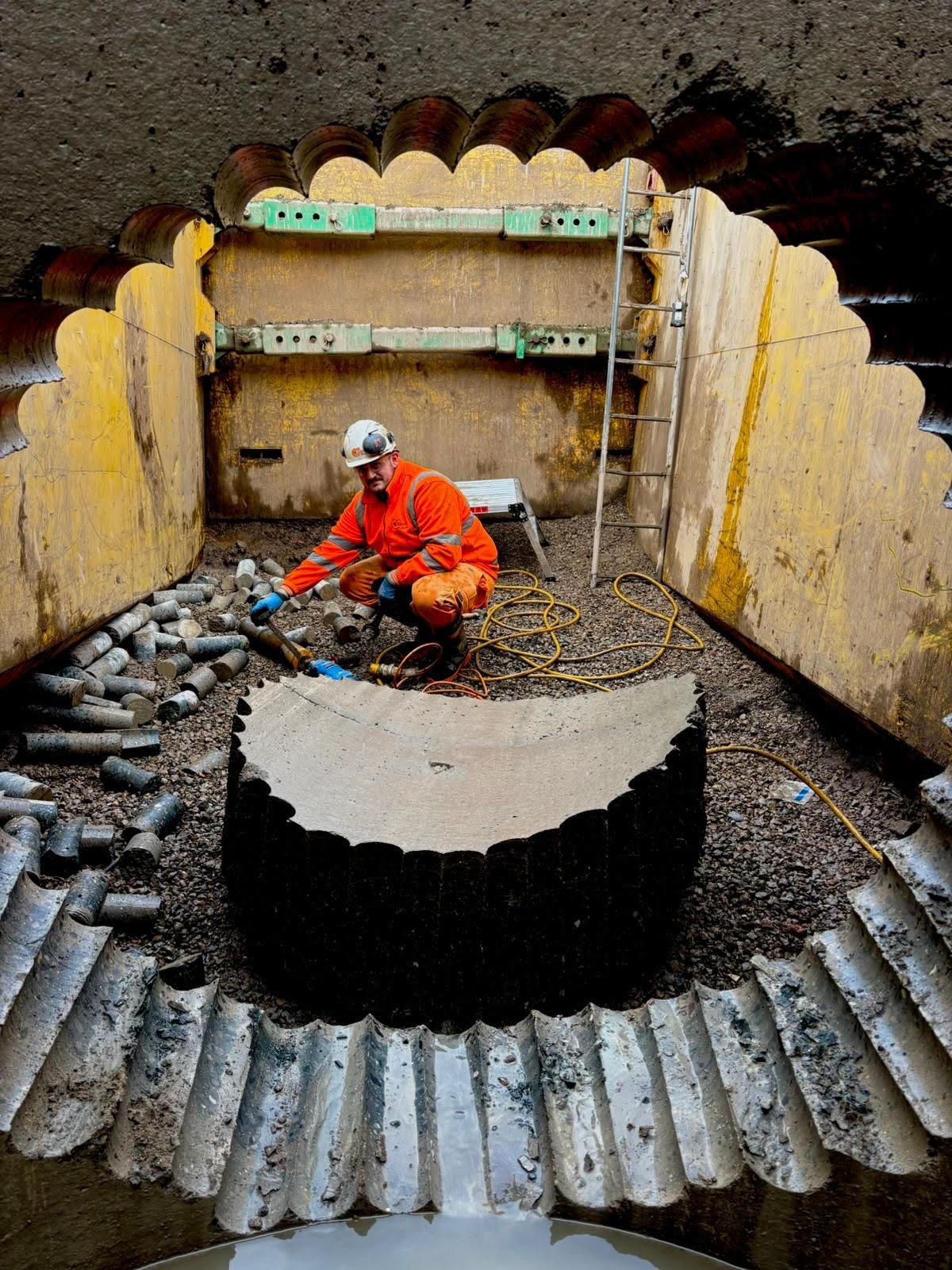 With detailed set-out and experienced operatives, the stitched drilling process delivered a smooth and accurate opening, ready for pipe installation.